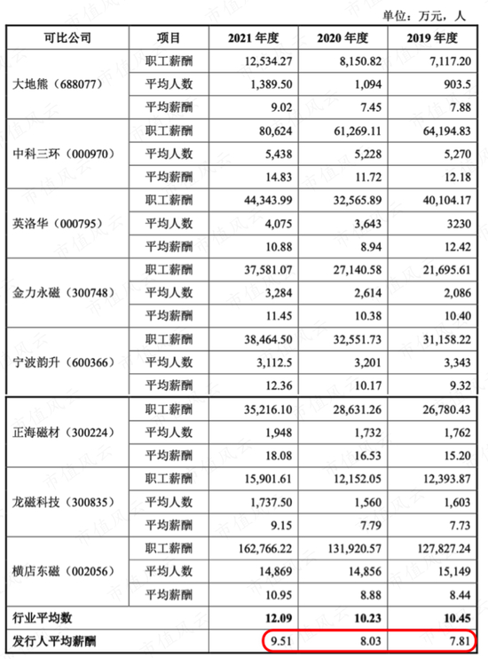 但一步慢,步步慢,成立时间晚,上市时间晚,没有行业知名度和资金实力,不足以提供更好的薪酬待遇吸引高端人才,中科磁业平均薪酬远低于行业竞争对手。