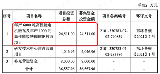 这次IPO准备募投的项目,主要是“年产6000吨高性能电机磁瓦及年产1000吨高性能钕铁硼磁钢技改项目”。