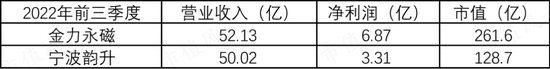 由于其他公司都还没披露2022年业绩,但从前三季度业绩来看,头部公司都比中科磁业的业绩增速更快;