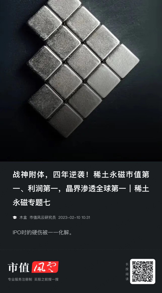 稀土永磁专题报告已经覆盖中科三环、英洛华、银河磁体、正海磁材、宁波韵升、大地熊,以及金力永磁,感兴趣的老铁可在市值风云App搜索查阅。