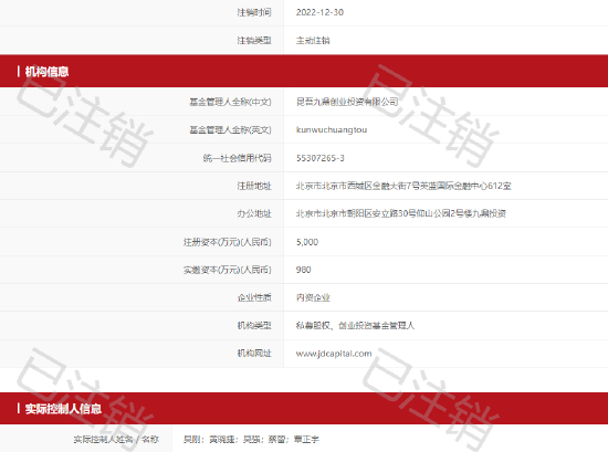 截至目前,昆吾九鼎创业投资有限公司(简称:昆吾九鼎创投)的工商信息尚未更新。然而,在2022年12月30日,这家机构已主动注销私募基金管理人资质。