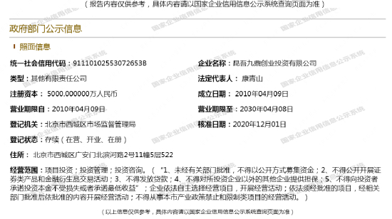 据中基协备案信息,昆吾九鼎创投的股东方分别是昆吾九鼎投资管理有限公司(简称:九鼎投资)和苏州昆吾九鼎投资管理有限公司(简称:苏州昆吾九鼎)。
