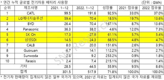横向对比,2022年,SNE Research统计排名第二至第四的企业,全球市占率合计34.4%,仍不及宁德时代。