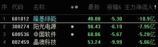 今日主力资金净流出前四的上市公司中,有三家是光伏企业。至于为何突然集体重挫,目前相关暂无进一步公开消息披露。