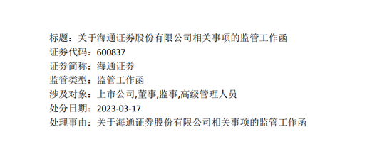 行家也无从得知,这一事件,是否来自海通证券担任IPO和持续督导业务的保荐机构,并购重组等财务顾问,还是单独针对这位刚刚“下课”的高管人员?