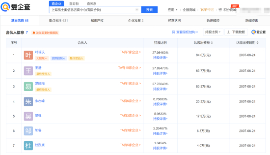 目前,凯士奥共有7位合伙人,其中包括四位同花顺董事会成员叶琼玖、王进、吴强、朱志峰,以及同花顺财务总监杜烈康、同花顺董事长易峥的姐姐易晓梅以及凯士奥长期的实控人邹鲁。