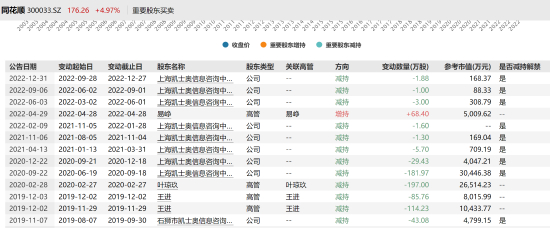 在减持方面,凯士奥最初持股同花顺的比例为15%,截至目前已减持至9.47%。