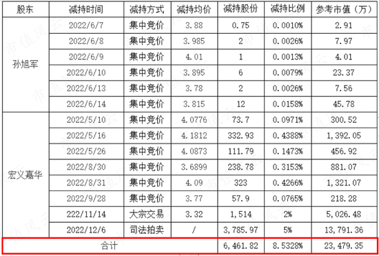 即使宏义嘉华及一致行动人,通过大宗交易、集合竞价等方式,减持套现2.35亿,但对比入主时掏出的21.08亿,仍然浮亏14.37亿。
