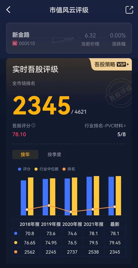 近几年,新金路的业绩表现有所改善,当前股价也较2018-2019年要高出不少,吾股排名排在中位。