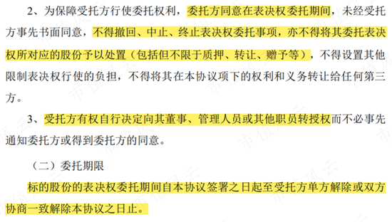协议规定,宏义嘉华不得撤回、中止、终止此次表决权委托,也不得处置对应股份,但东君泰达有权单方解除或转让委托关系。