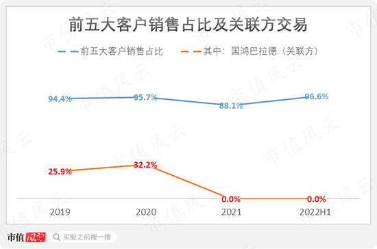 国鸿巴拉德在2019-2020年是公司的第二大客户,分别占当年销售额的26%和32%。2021年,公司不再对国鸿巴拉德销售。