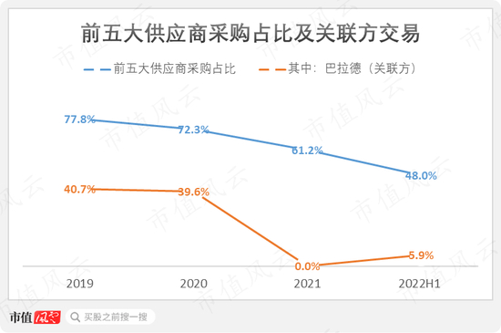 2019-2020年,巴拉德为公司的第一大供应商,分别占公司当年采购金额的41%和40%。类似地,2021年起,公司对巴拉德的采购也大幅减少。