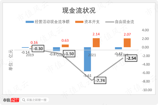 与此同时,公司的资本开支日益增大,2021年和2022年上半年均超过2亿元。