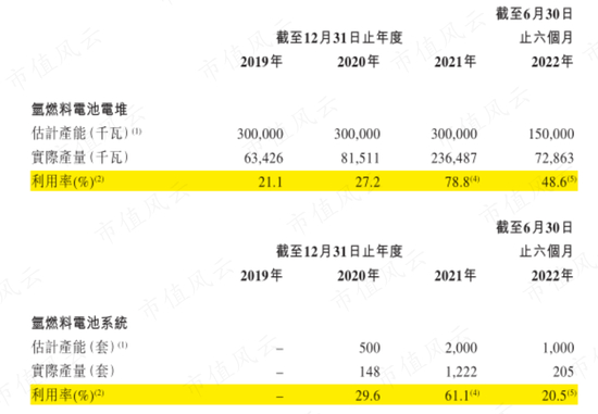 事实上,公司的产能利用率并不算高。2021年,公司电堆和电池系统的产能利用率分别为79%和61%。