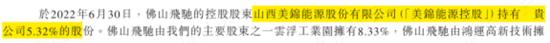 美锦能源(000723.SZ)是佛山飞驰的控股股东,同时也是公司递交招股书时的大股东之一,据披露持股5.32%。