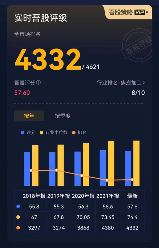 美锦能源则是一家传统焦煤企业,市值风云APP吾股大数据系统显示,其实时吾股评级排名垫底。