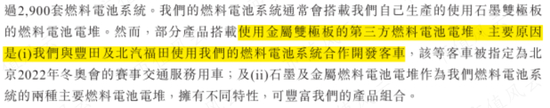相比之下,公司表示,其目前使用的电堆主要为自研自产,其中用到的核心零部件石墨双极板,也均为自产。