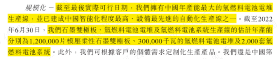 截至2022年上半年末,云浮工厂的年产能为30万千瓦电堆、2,000套氢燃料电池系统。