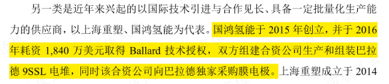 乍看之下,公司称得上是氢燃料电池行业中罕见的“国产替代”型选手。