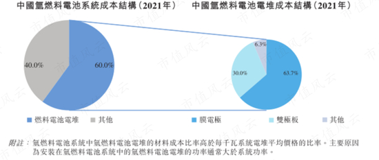 目前,电堆在氢燃料电池系统中的成本占比约60%左右。
