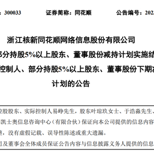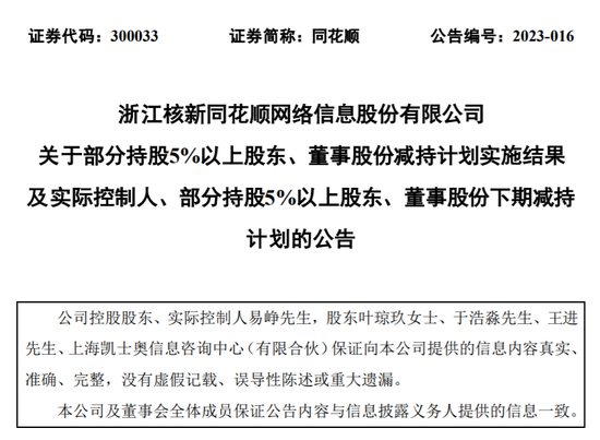 同花顺股东又宣布大减持