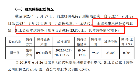 结果半年过去了,你们猜减持了多少?一个人都没减持,只有员工持股公司凯士奥减持了2,878,143股,占公司总股本比例的0.54%。