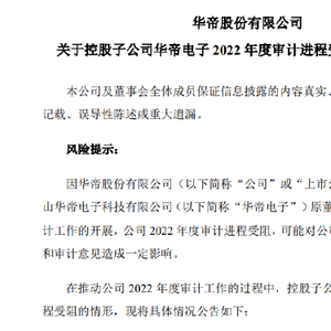 3月25日,华帝股份公告披露称,公司年审机构无法进入华帝电子执行现场审计程序。公司及审计机构多次与吴刚沟通,敦促其积极配合上市公司审计工作,但均沟通无果。