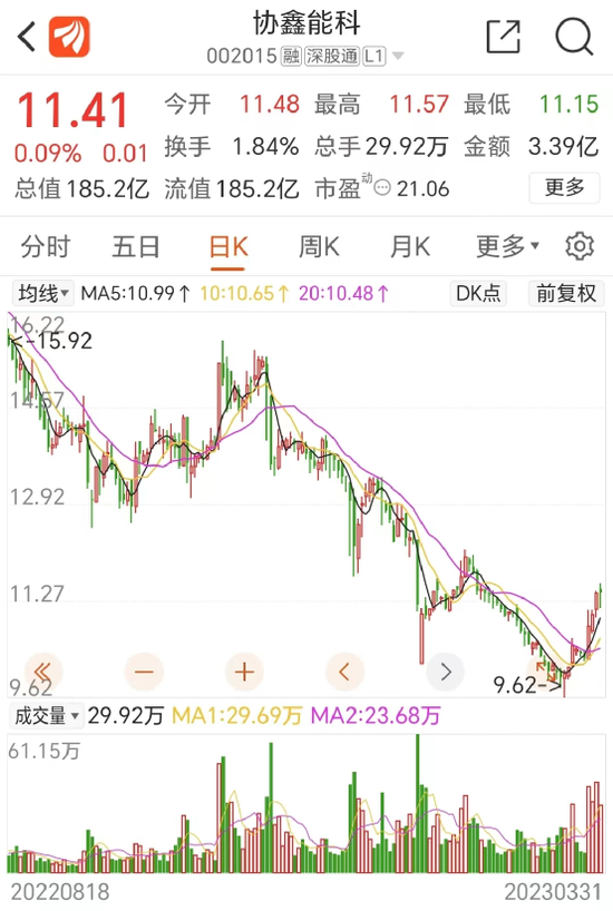 目前,协鑫能科的总市值为185亿,股价为11.41元。