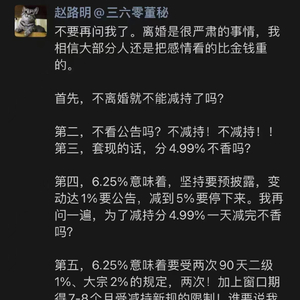 360董秘赵路明朋友圈表示:离婚是很严肃的事情,感情比金钱重要。