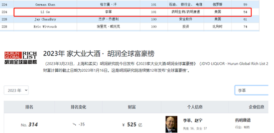 比如2021年福布斯全球亿万富豪排行榜上,李革以101亿美元财富位居第224位。2023年胡润全球富豪榜上,李革、赵宁以525亿元排名314位。