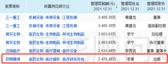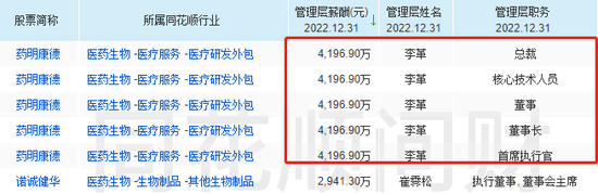 A股年报披露进行时,谁是A股年薪第一?截止4月6日收盘,同花顺问财显示,药明康德董事长李革暂时问鼎,2022年薪酬是4196.90万。