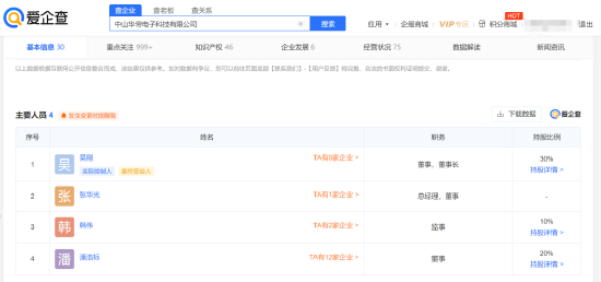值得注意的是,被抢公章这家华帝电子公司成立于2012年,华帝股份持股40%,吴刚持股30%,潘浩标持股20%,韩伟持股10%,该公司纳入合并报表范围。不过,因为华帝电子2021年净资产、营业收入、净利润占华帝股份对应财务指标的比例分别为2.43%、3.04%和6.06%,所以看起来对上市公司的影响并不大。