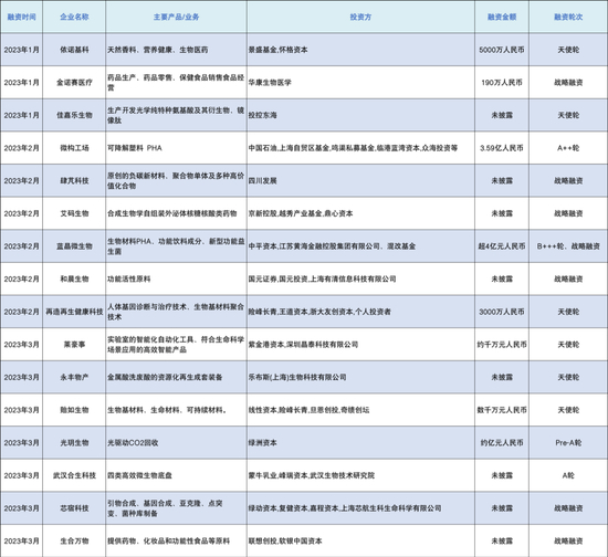 不过,2023年第一季度,明星项目又活跃了起来。仅2月,蓝晶微生物完成超4亿元B+++轮融资,正式发布PHA(聚羟基脂肪酸酯)产品;微构工场完成3.59亿元A+轮融资,与中石油昆仑资本及义翘神州签署战略合作。
