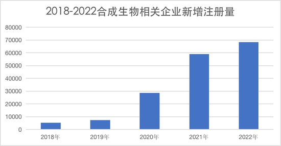 不仅是巨头斥资投入合成生物,新的公司也在不断涌现。根据企查查向《财经十一人》提供的数据,合成生物相关企业的新增注册量在2020年爆发,从7000家猛涨至2.9万家,之后的两年持续增长,2021年新增5.9万家,2022年新增6.8万家。2023年截至4月3日,合成生物相关企业新增1.8万家,已经超过2017年至2019年新增注册量的总和。