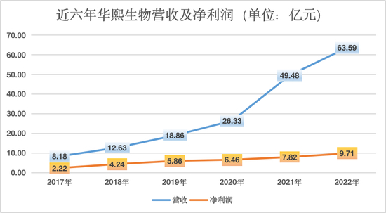 2022年,华熙生物营收增长28.53%至63.59亿元,不及2021年88%的增长率,这主要是玻尿酸原料及使用玻尿酸的功能性护肤品营收增速下滑所致。但是,由于公司采取了减少销售费用等降本措施,其净利润同比上涨24.11%至9.71亿元,增速略超2021年。