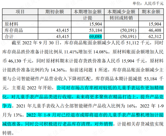 2022年前三季度,还由于收缩智能硬件产品品类,计提了6,909万元的存货跌价准备。