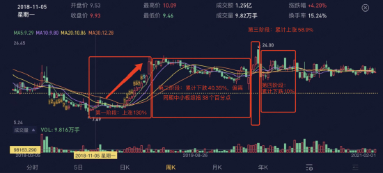 随后进入第二阶段,其涉案账户实施日内反向交易,使公司股价又累计下跌40.3%,偏离同期中小板综指38.1个百分点。