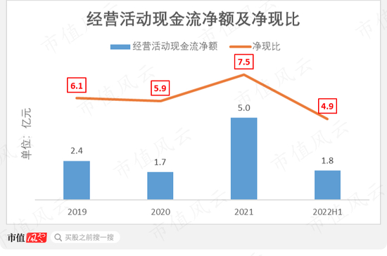 公司的现金流状况同样稳定,净现比维持在较高水平。2021年,公司经营活动现金流净额为5亿元,净现比为7.5。