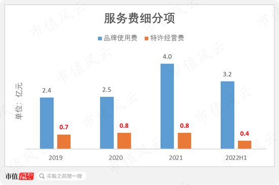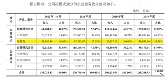 具体体现为:服务费占公司加盟收入的比重不断提升,并自2022年上半年起,成为公司加盟店收入的第一大来源,约占58%。