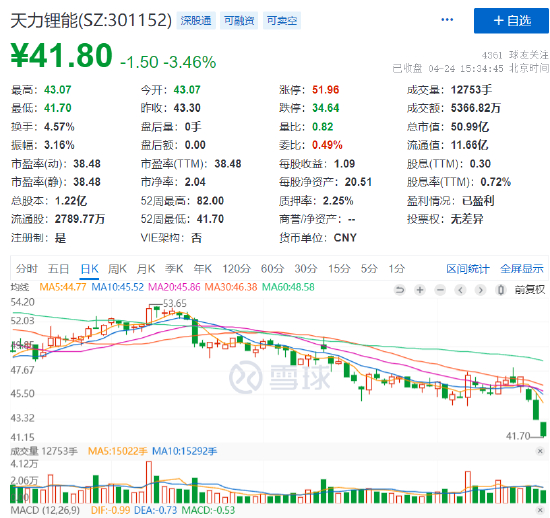 天力锂能公告,一季度营业收入5.8亿元,同比下降14.63%,净利润49.95万元,同比下降99.15%。扣非之后,一季度亏了600多万。目前市值50多亿。