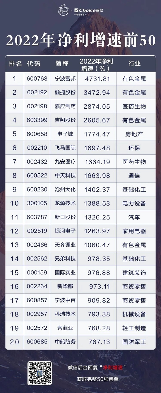 而从净利润增幅来看,跻身净利润增速前50的上市公司数有色金属行业最多,共有9家,主要为锂行业公司,包括融捷股份、天齐锂业、天华新能、永兴材料、盛新锂能、江特电机。