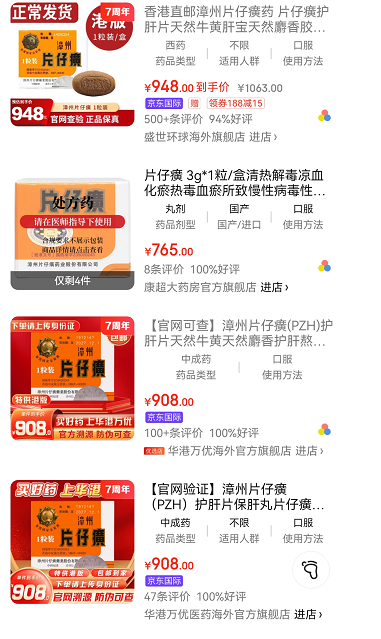 值得注意的是,宣布提价后,在流通渠道仍然在被热炒,消费者需花费小千元的价格才能买到重量仅为3克的片仔癀。金融投资报记者从电商平台了解到,不少商家售卖的片仔癀单粒价格涨至900元左右。
