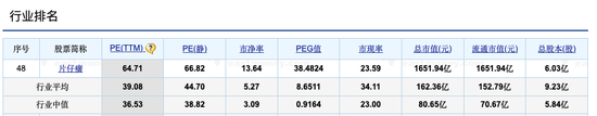 二级市场上,除了股价、市值,片仔癀的市盈率也居高不下。