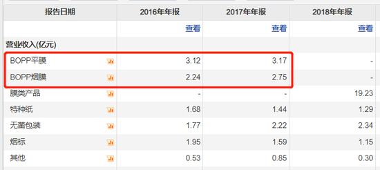 彼时恩捷股份的前身创新股份还是一家做着烟标印刷生意的传统企业。根据资料来看,主要从事包装装潢及其他印刷品印刷,2016-2017年公司核心产品BOPP平膜、烟膜及烟标的销售收入能达到7.51亿,占比在65%以上。
