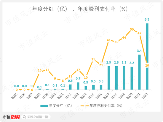 不过2022年分红回到以往的抠门习惯,分红率只有20%。