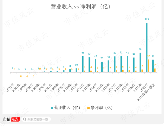 2022年,公司营收122.61亿(同比+153.27%),毛利率46.94%;净利26.06亿(同比+73.97%),扣非净利6.77亿(同比-3.93%)。
