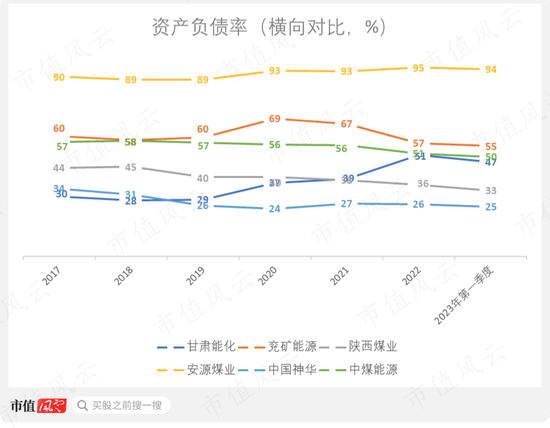 两个时点对应两次资产负债率的上浮,即使如此,甘肃能化依然只是从行业偏低水平,变成中等偏低水平。