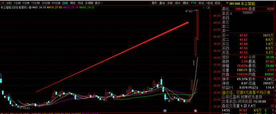 5月17日当天,丰立智能拉涨7%,5月18日,丰立智能开盘直线涨停,表现强劲,其后三天连拉四个涨停,四天累计涨幅达到107%,成为最快翻倍股,也是创业板罕见的4连板个股。