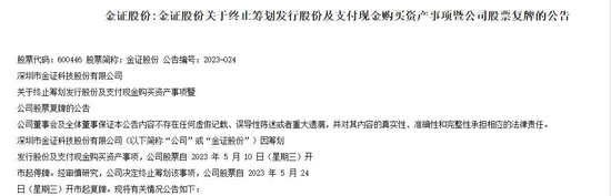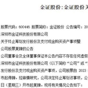 对于终止收购原因,金证股份表示,由于交易双方未能就本次交易方案的交易对价、业绩承诺、投后管理等核心条款达成一致意见,预计在规定的停牌时间期限内,难以形成具体方案继续推进本次交易事项,为切实维护上市公司及广大投资者利益,经审慎研究并协商一致,决定终止筹划本次发行股份及支付现金购买资产相关事项。