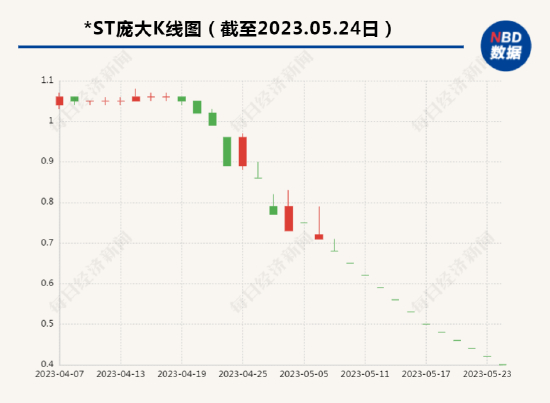 截至5月24日收盘,*ST庞大报0.4元/股,市值40.91亿元。